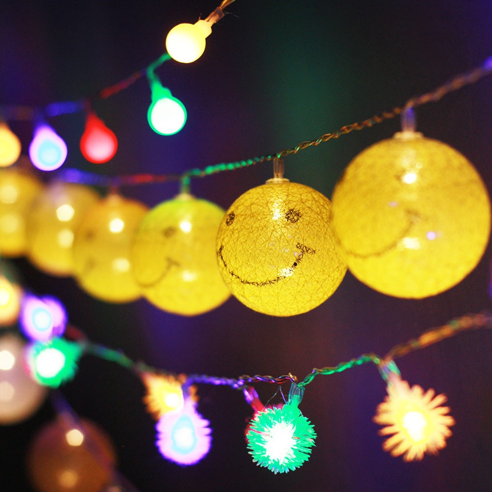 스마일 코튼볼 장식 가랜드조명 차박 캠핑 LED 조명 10구 20구