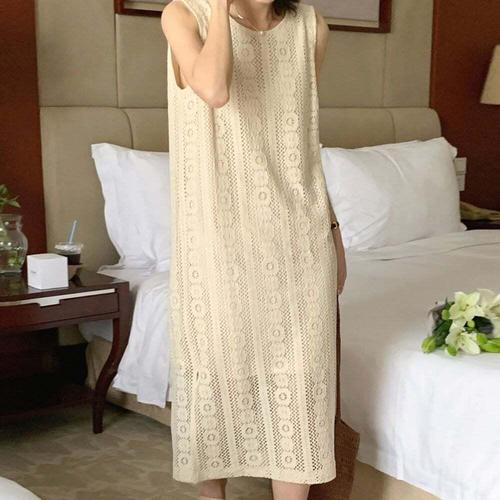 [셀럽하우스]레이스 DGYE3784 민소매 플라워패턴 옆트임 데일리룩
