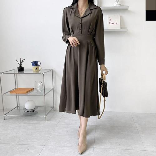 [셀럽하우스]오픈형 NVAG8296 앞 단추 여성스러운 롱 원피스 30대데일리룩