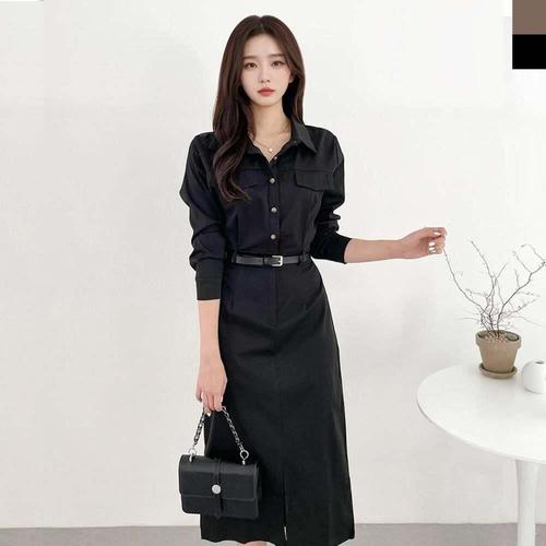 스타일닥터 여성 롱 원피스 패션 카라넥 긴팔 캐주얼 원피스 빅사이즈 봄가을 데일리룩 셔츠원피스