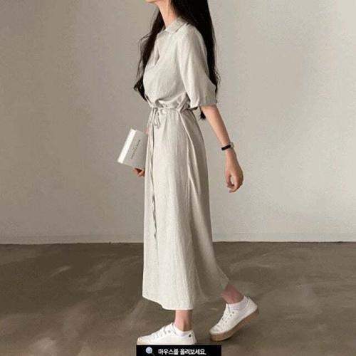 [셀럽하우스]여성 SNRU6410 린넨 반팔 롱원피스 셔츠원피스 데일리룩