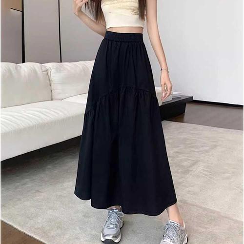 여름 데일리 편한 허리 밴딩 롱 스커트 플레어 훌 WFKOCHM