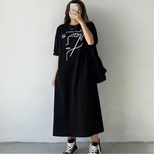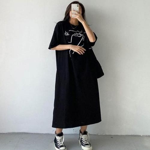 [엄지척]여자 얼굴 프린팅 반팔 루즈핏 롱 원피스 여름 데일리_19913193_667501