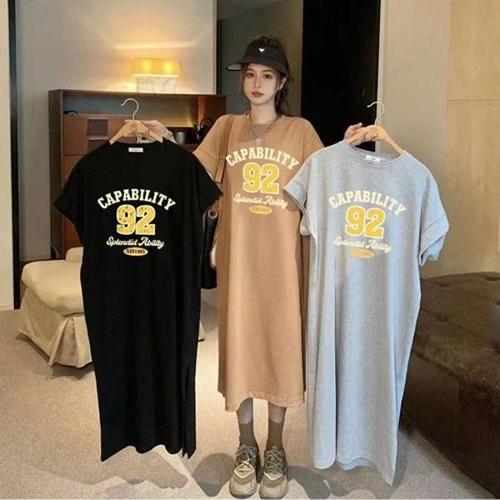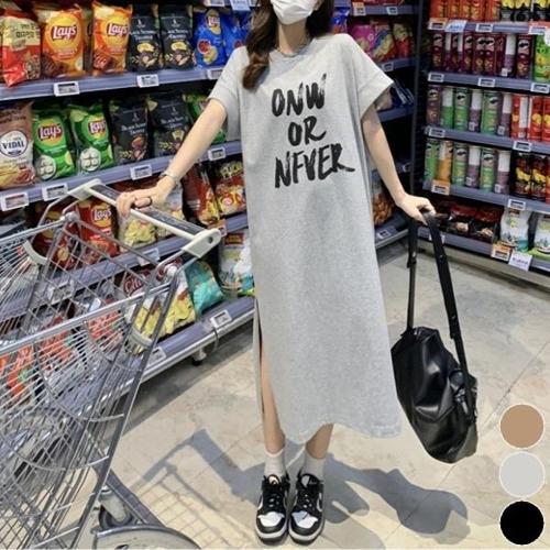 [엄지척]여자 여름 편한 데일리 반팔 롱 원피스 레터링 포인트_19913089_667501