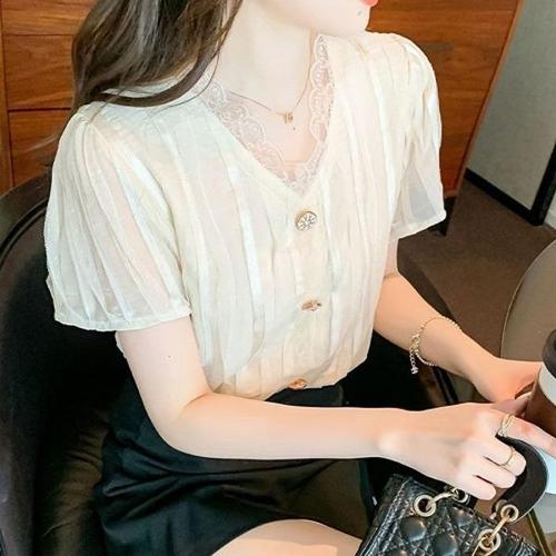 [엄지척]레이스넥 여자 반팔 블라우스 직장인 여성 데일리룩_19642765_667501