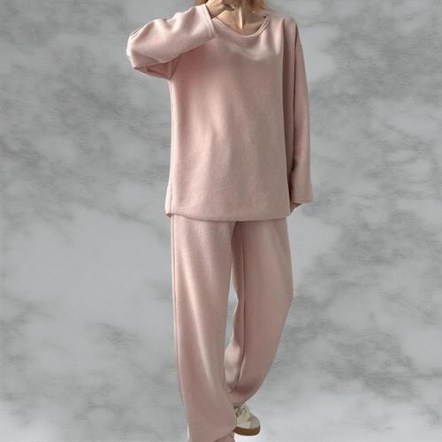 [문에이블]문에이블 여자 여성 루즈핏 보트넥 니트 플리츠 밴딩 팬츠 편한 데일리룩 투피스 세트