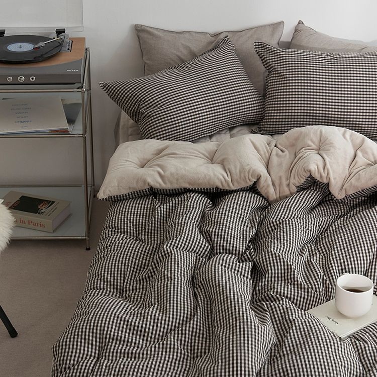 따뜻한 카푸치노 브라운체크 극세사 차렵이불 SS/Q