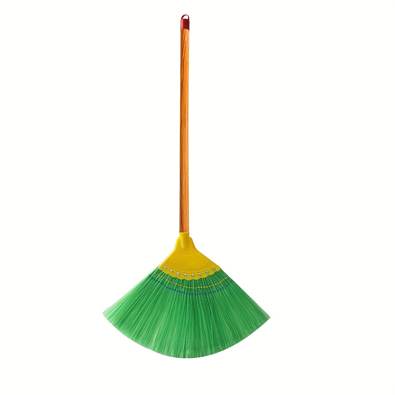 TEMU 내구성 있는 나무 손잡이가 있는 초광폭 8열 브러쉬 빗자루 - 헤비듀티, 야외 마당, 차도, 파티오 청소용