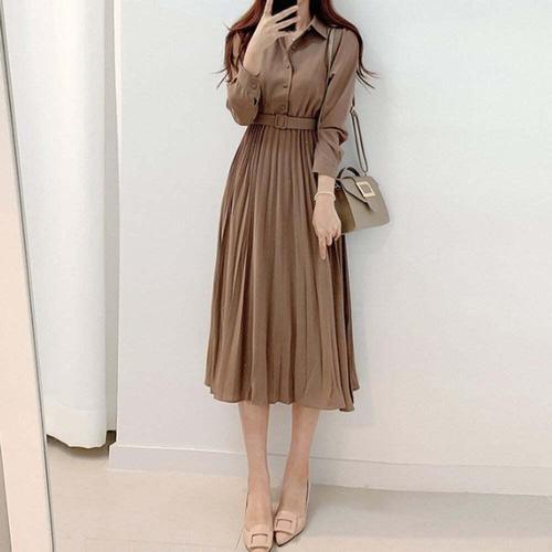 [셀럽하우스]데일리룩 PQJE4363 클래식 모던 폴리 혼방 허리 벨트 원피스