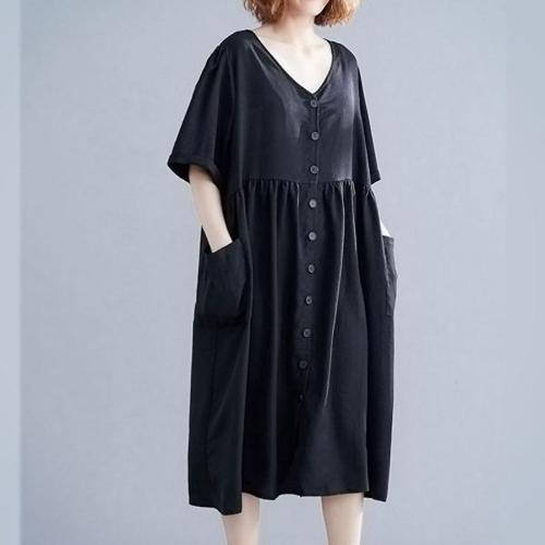 [엄지척]여성 여름 데일리 냉감 폴리 버튼 포인트 반팔 원피스_19872377_667501