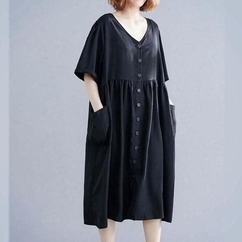 [셀럽하우스]여성 ZETZ1028 여름 데일리 냉감 폴리 버튼 포인트 반팔 원피스