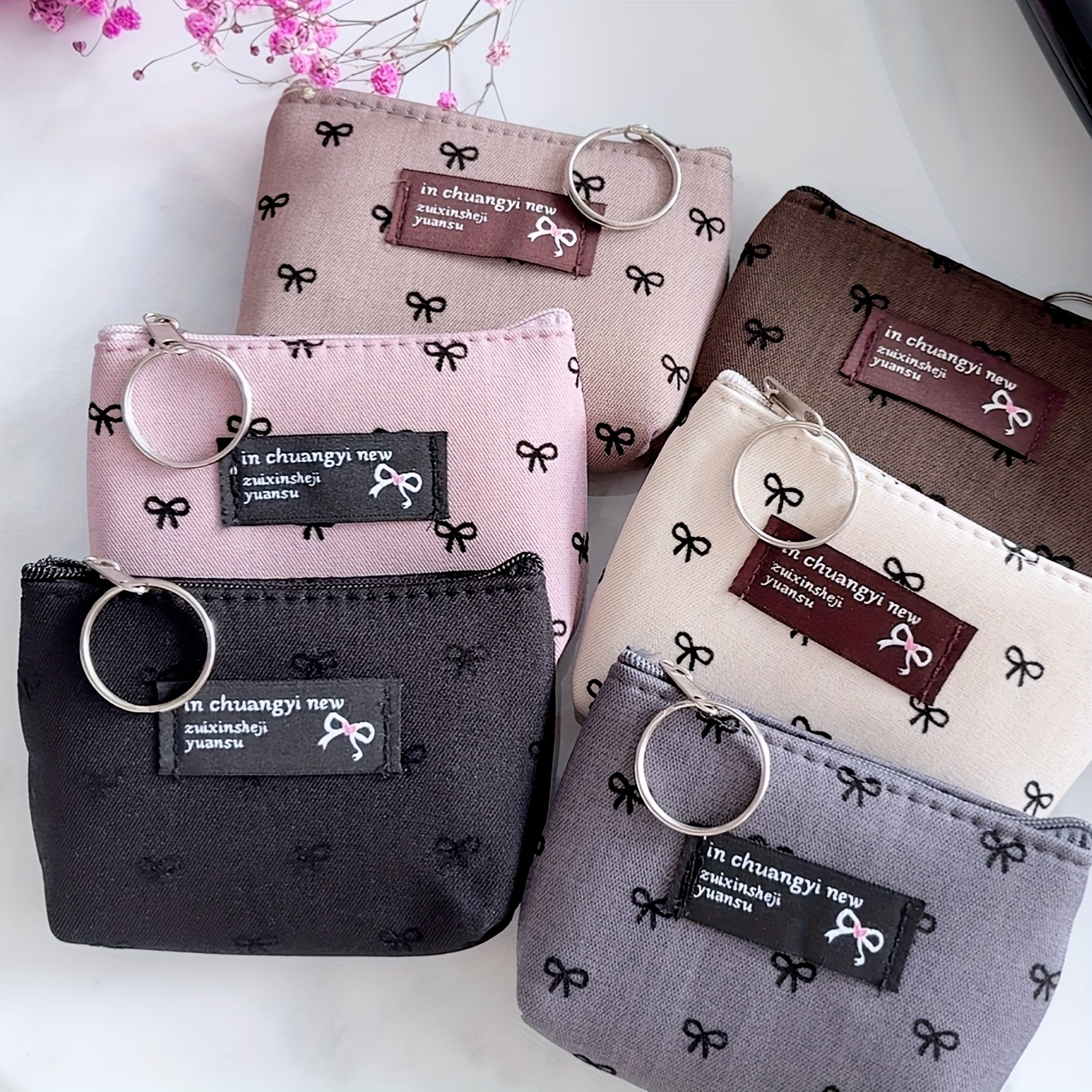 TEMU 6개 세트 빈티지 리본 파우치 - 여성용 멀티퍼포즈 소형 지갑 & 동전 지갑 정리함, 레트로 리본 장식 손세탁 가능한 일상용 가방, 선물용 (6개)