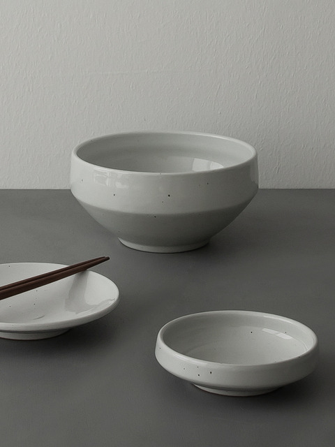 네이처 화이트/그레이 무광 도자기 1인 한식 홈 식기 접시세트 (5P)