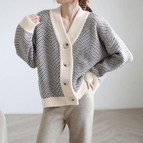 [엄지척]배색 스트라이프 가디건 도톰 간절기 데이트룩_19800192_667501