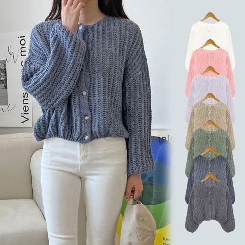 [엄지척]여성 오버핏 벌룬핏 도톰 니트 라운드 가디건_19800541_667501