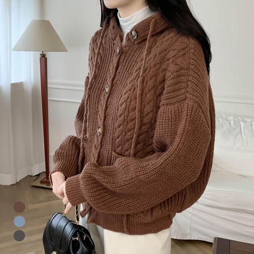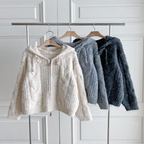 [옷자락] 여자 클래식 꽈배기 도톰 후드 집업 니트 가디건