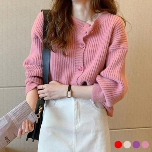 [엄지척]여성 도톰 골지 니트가디건 라운드넥 여자 단추가디건_19801736_667501