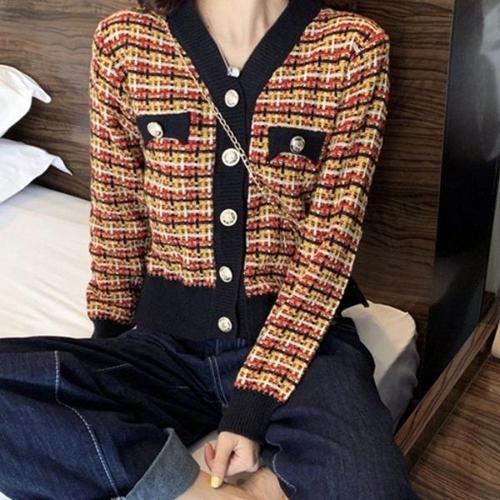 [엄지척]여성 봄 가을 4컬러 도톰 체크 발랄 크롭 단추 가디건_19792882_667501
