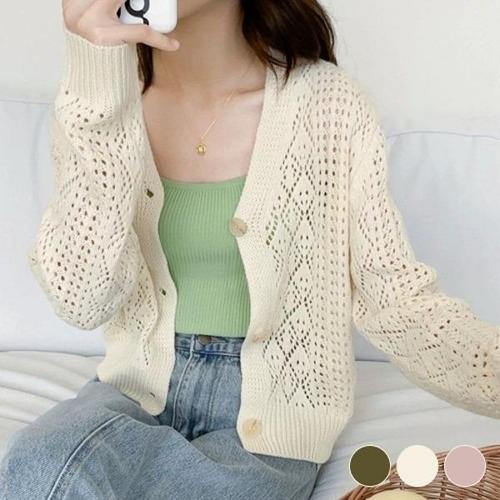 [엄지척]펀칭 브이넥 니트 가디건 URD401 도트 가디건 니트가_19791555_667501