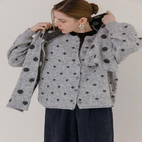나인클로젯 도톰한 블랙 도트 니트 여성 가디건 가을 겨울 땡땡이 스웨터