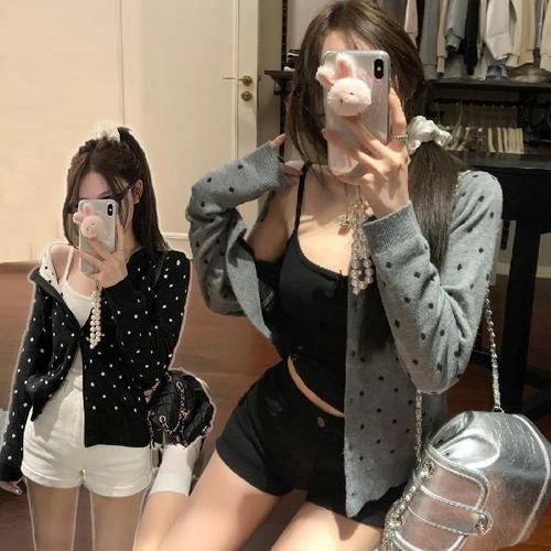 도트가디건 깔끔 니트 여름 긴팔 여성 휴가복 WFKOITE