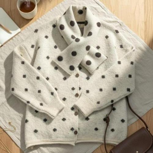 [막스까르띠지오][머플러SET] 베리어스 도트 라운드 가디건 세트