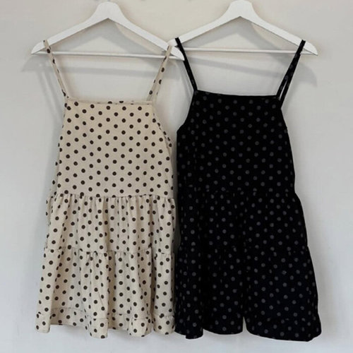 더핑크 / 리요 A라인 도트 레이어드 캉캉 끈 나시 미니 원피스
