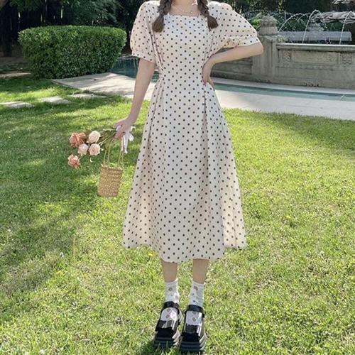 [셀럽하우스]데이트룩 COUQ2922 러블리느낌 스퀘어넥 플레어 도트원피스