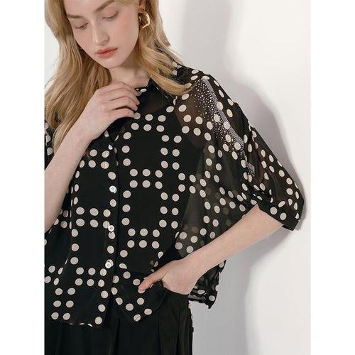 [샵앤][샵앤] 여성 시스루 도트 쉬폰 7부 블라우스 WDM-WBL-KSS8