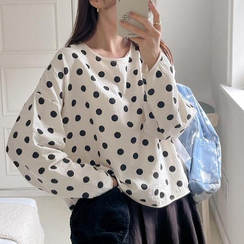 [다잇템]여성 도트 카라없는 롱슬리브 블라우스