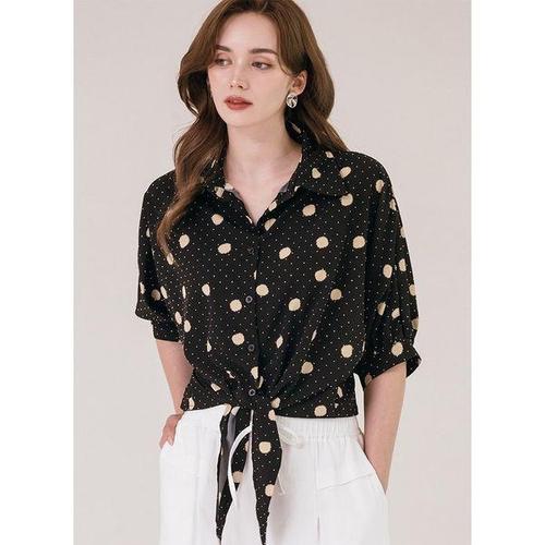 캐리스노트 스퀘어 도트 패턴 타이 블라우스 CN3SBL001