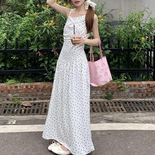 [셀럽하우스]여성 UXDH9521 여름 땡땡이 프린트 민소매 나시 면 롱 원피스