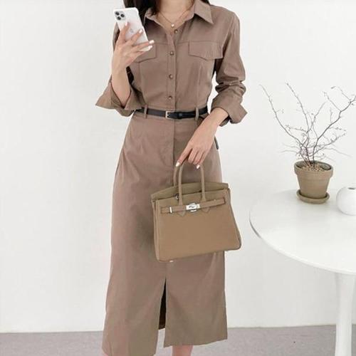 [엄지척]하객룩 돌잔치 밑단트임 셔츠 벨트포함 롱원피스_19911959_667501