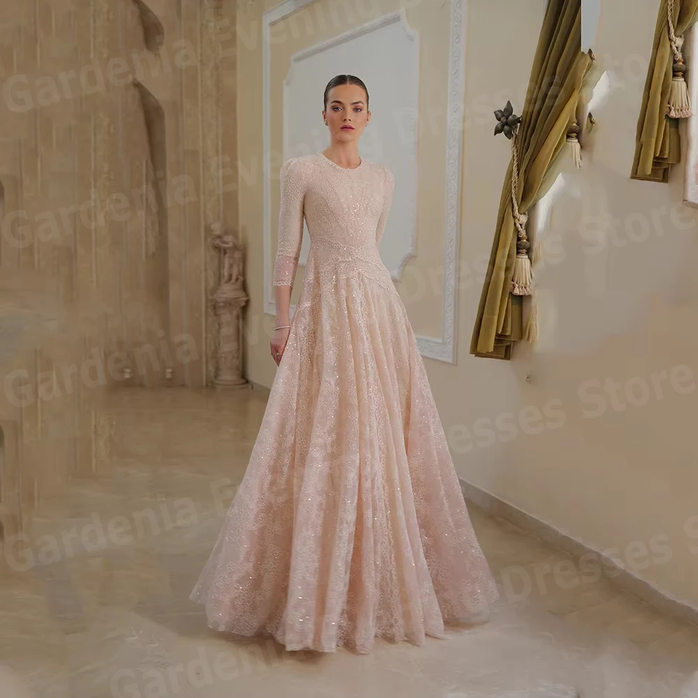 럭셔리한 A라인 여성 이브닝 드레스 O넥 프롬 가운 맞춤형 반짝이는 레이스 정장 파티 드레스