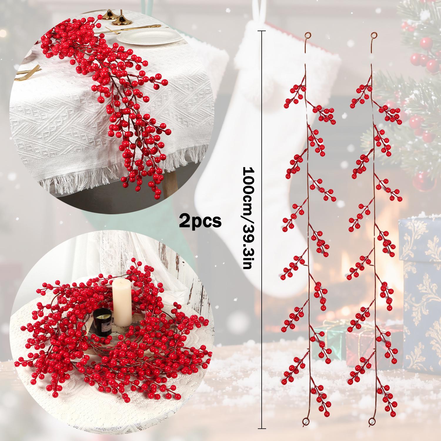 TEMU 생생한 초록 잎과 풍성한 빨간색 베리들이 특징인, 매우 긴 수제 리얼한 빨간색 베리 화환 2개 세트 - 내구성이 뛰어난 플라스틱 실내외 크리스마스 겨울 문 장식, 현관문, 벽난로 장식대에 적합