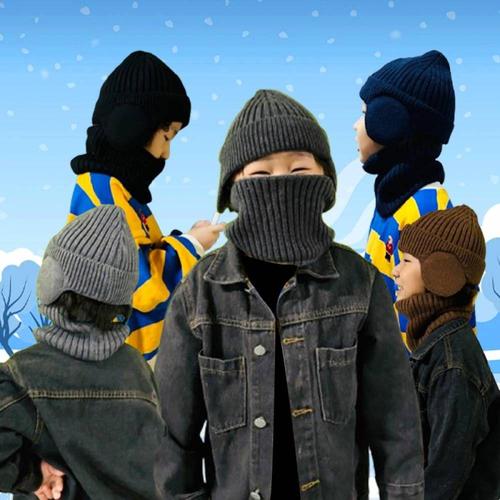 TBZ 두꺼운 목도리 심플하고 따뜻한 일체형 귀달이 미니 모자 세트 WFMGSTJ