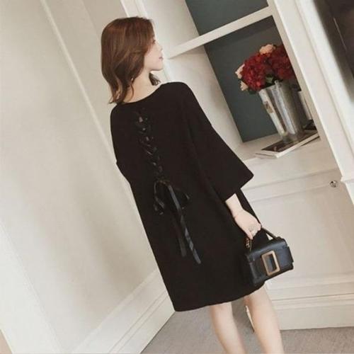 [다잇템]여자 끈 라운드 뒷 리본 밑단 수술 원피스