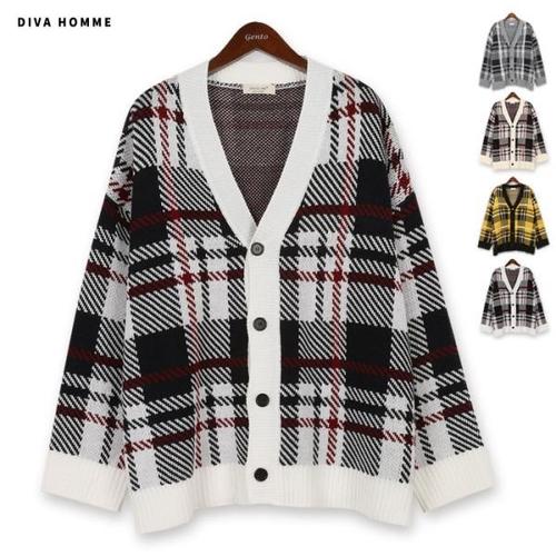 [디바옴므]언로우 체크 오버핏 니트 가디건