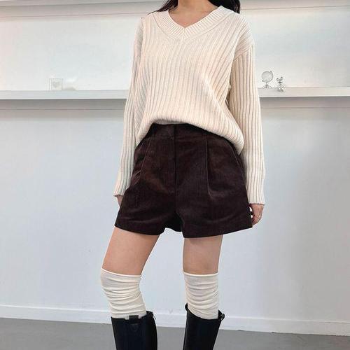 [다잇템]여자 겨울숏팬츠 골덴 면원단 핀턱 넓은 반바지