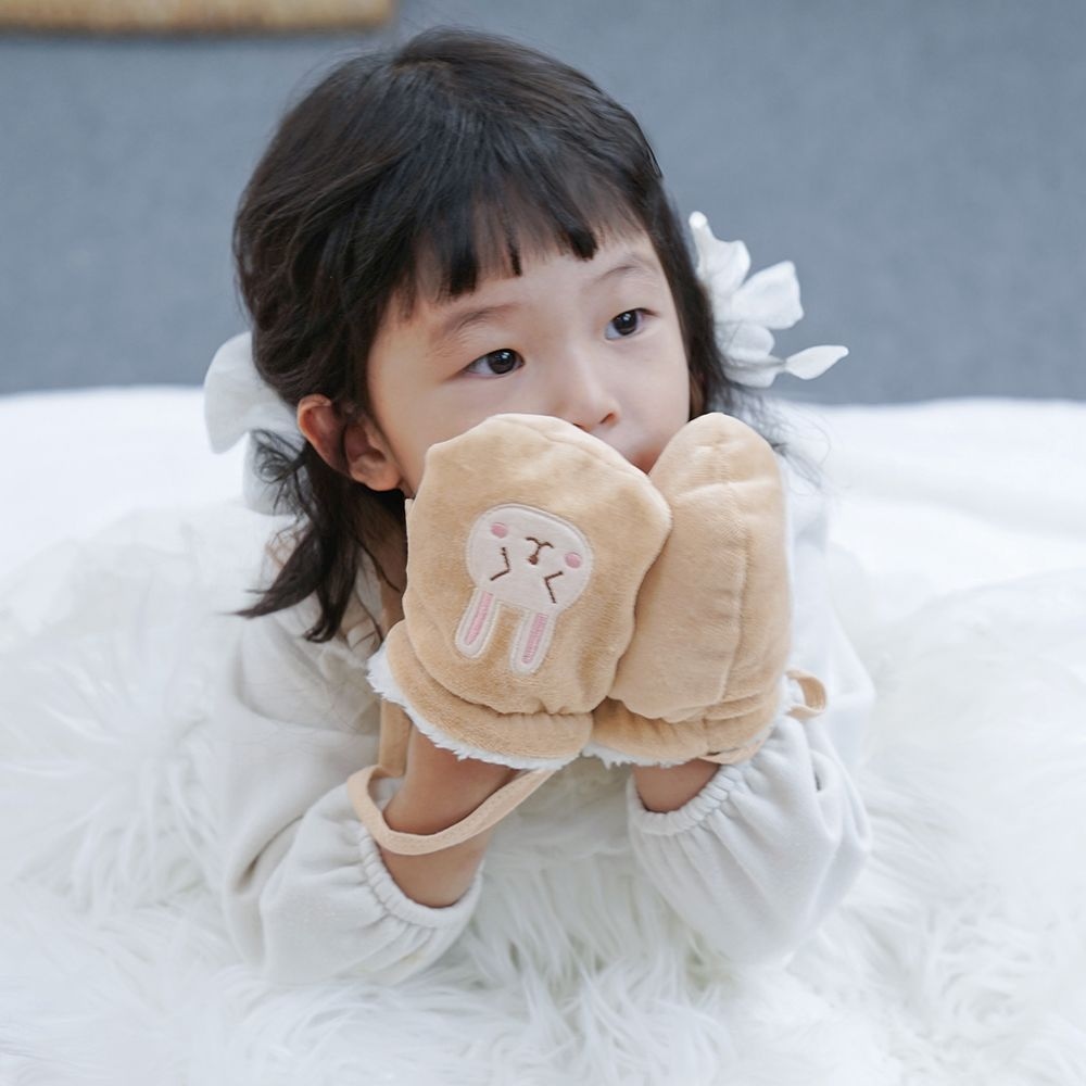 귀여운 곰 어린이 플러시 장갑 겨울 아기 걸이 목 장갑 두꺼운 양털 양털 어린이 핑거리스 장갑 1-4 년 손 따뜻하게
