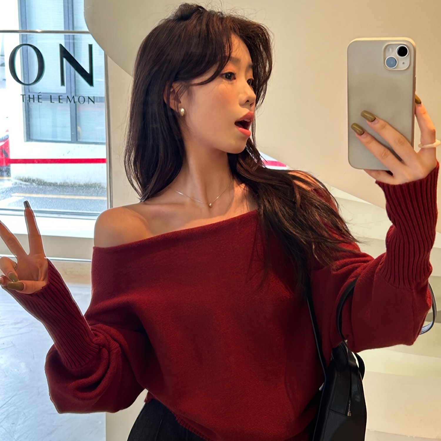 TEMU 여성용 오프숄더 풀오버 스웨터, 가을/겨울 한국식 우아한 긴팔 가디건|블라우스|가디건|여성블라우스