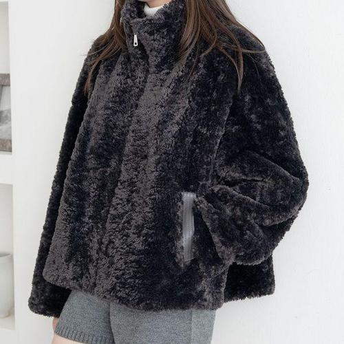 [옷자락]여자 겨울 속가죽 하이넥 소프트퍼 집업 오버핏 자켓
