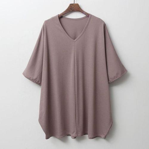 [다잇템][다잇템] 여자 반소매 민무늬 박시핏 큰사이즈 코튼 딥브이넥 티셔츠_21923015_588872