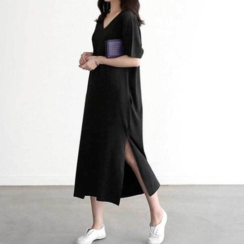 [다잇템]여자 슬림 딥브이 모임룩 샤 컷오프 롱원피스