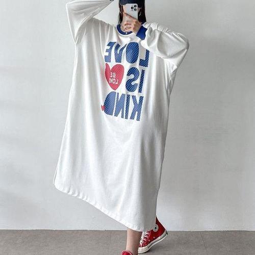 [옷자락] 여자 홈웨어 박시핏 프린팅 도트 링거 배색 롱원피스