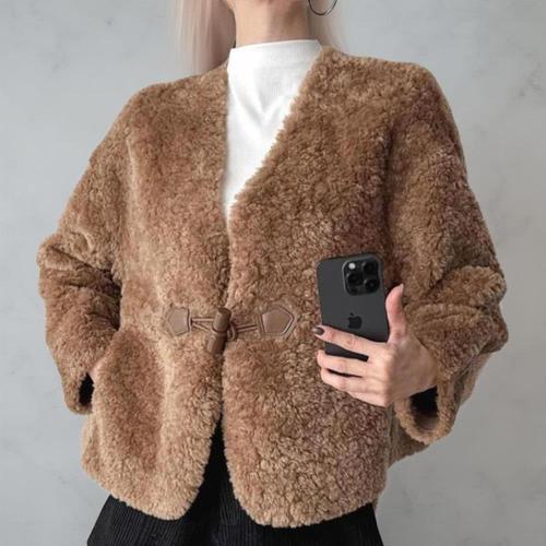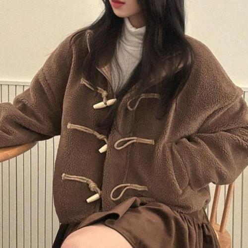 BANHANY 틸레이?? 떡볶이 토글 버튼 페이크 퍼 자켓