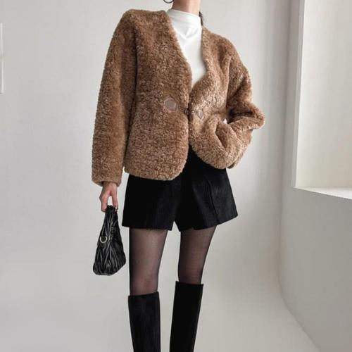 여성 겨울 떡볶이 뽀글이 숏코트 부드러운 양가죽 따뜻한 데일리 아우터 여성하프코트 모던한 겨울패션