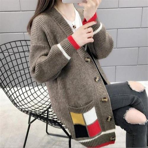 여성용 O-넥 스웨터, 레터 패치워크 뜨게 카디건, 패셔너블 코트, 탑 티, 가을, 겨울, 달콤한 버튼