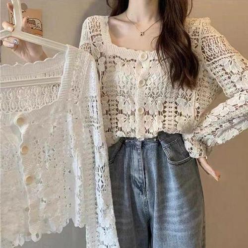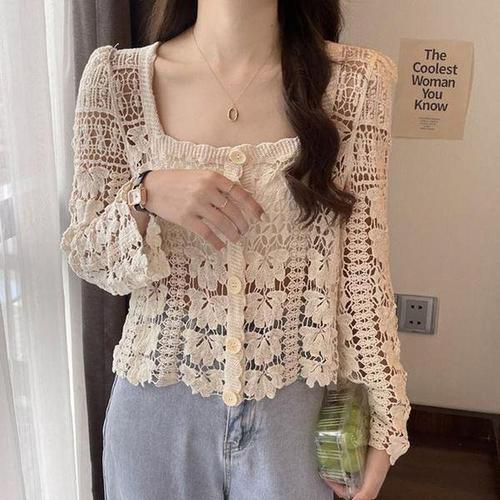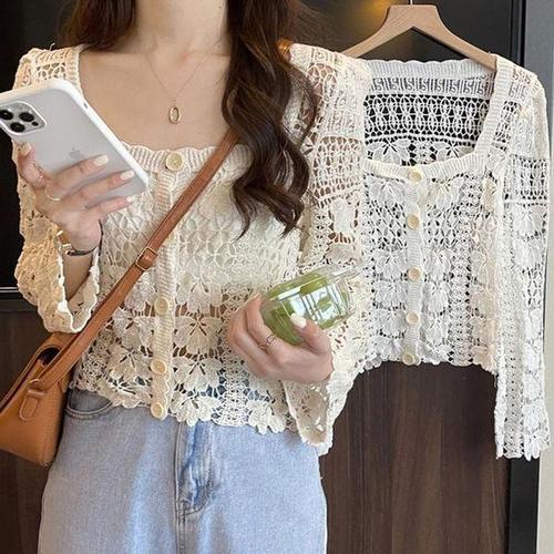 [셀러허브_여성트랜드패션]ONM 뜨개 스퀘어넥 크로셰 긴팔가디건