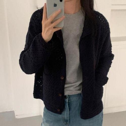 [셀러허브_여성트랜드패션]ONM 뜨개 크로셰 여자 비치 긴팔 니트 가디건